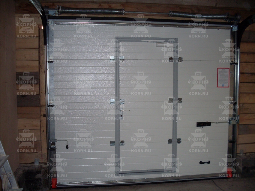 • Гаражные секционные ворота с калиткой (вид изнутри) Гаражные секционные ворота с калиткой (вид изнутри)